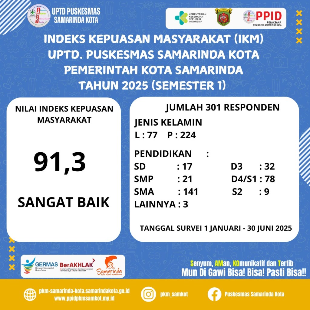 pkm-samarinda-kota September 27, 2025 Hai Healthies, Mimin izin share hasil survei kepuasan masyarakat UPTD. PUSKESMAS SAMARINDA KOTA Semester 1 (1 Januari - 30 Juni 2025) 🤗✨